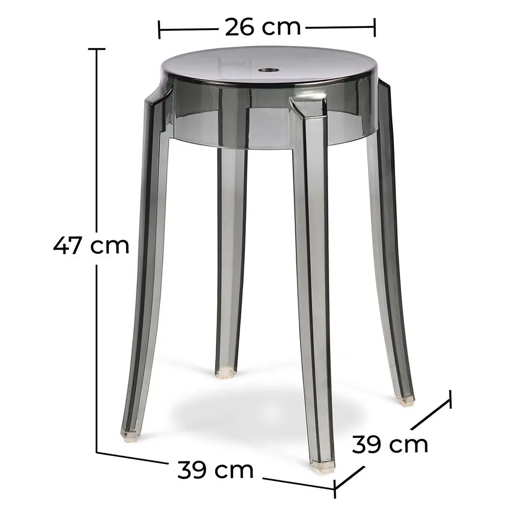 The range of furniture highlights a combination of classical furniture lines and a very contemporary design touch. The use of transparent PP as material breathes new life into traditional furniture. This contemporary furniture will easily find its place in your interior. This design stool can be placed in your living room, next to a bar or on your patio for a touch of whimsy. You can add other touches of the transparent nature of this contemporary stool by adding other pieces from the collection to create a mysterious atmosphere. Aside its originality and its design, this transparent furniture is also easy to clean using a damp cloth.