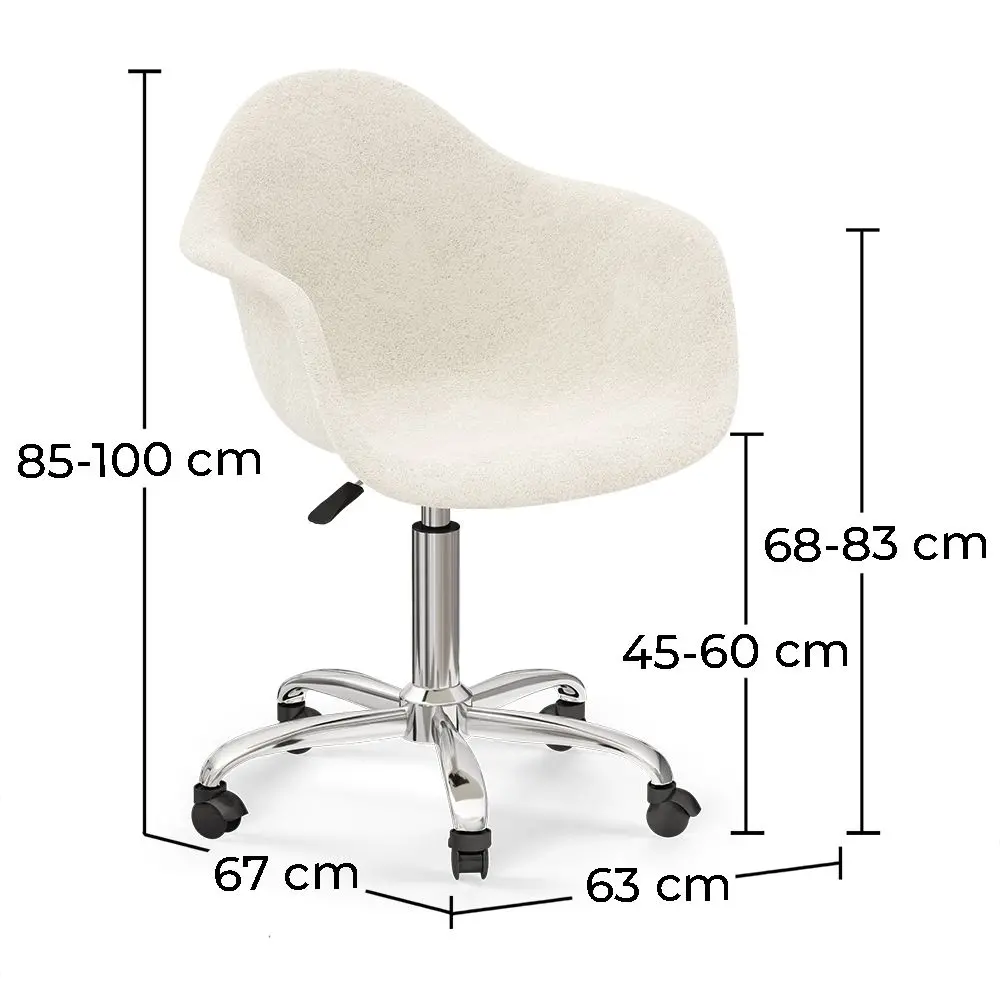 Looking for a comfortable and modern study chair? The Emery swivel office chair is perfect for you. This high-quality chair is upholstered in durable white bouclé and adapts to any decor. Sturdy and comfortable, our desk chair offers you great comfort and adapts to all your needs. It is easy to assemble and comes with wheels for easy movement around your workspace.