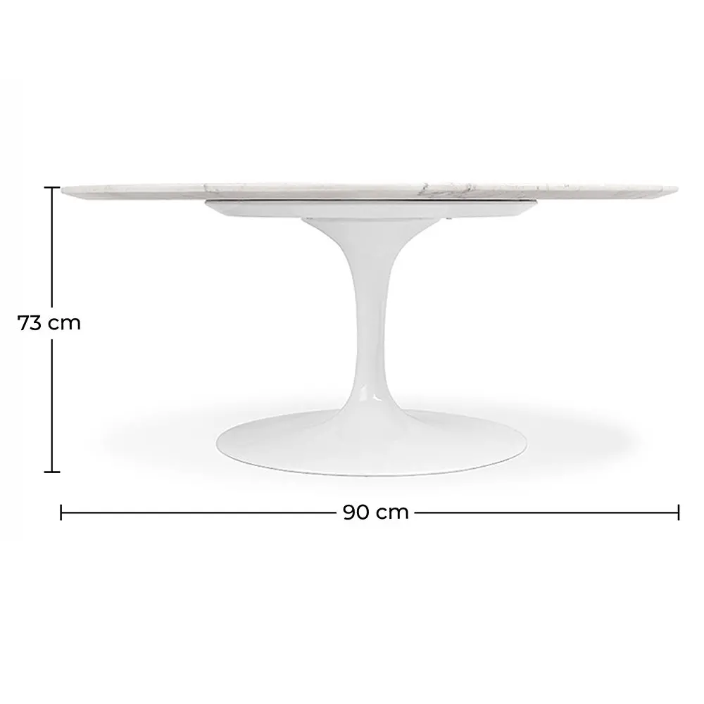 Made of marble, this round Tulipa Table -90 cm is part of the living room furniture collection along with the Tulipa chair and armchair, which have become a must have in the world of contemporary design. Like all the products from this collection, this model has a unique and central foot, which gives stability, solidity and space. Its 90 cm board will offer you all the space you want.