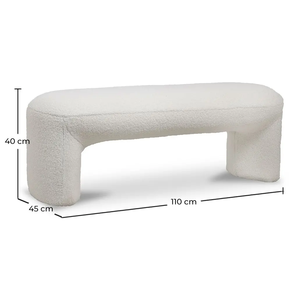 Experience design excellence with our 110-centimeter-wide bench, fully upholstered in bouclé fabric. With a minimalist approach and sophisticated aesthetic, this bench seamlessly combines elegance and functionality. The superior quality bouclé upholstery not only provides a luxurious look but also a soft touch sensation. Whether as a centerpiece in your living room or as a distinctive element in your entryway, this bench offers an unparalleled luxury experience in any space.
