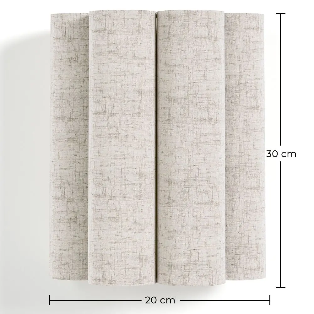 Add warmth and style to your bedroom with this elegant wall lamp. Its design combines an organically shaped fabric shade with an aged gold-finished metal structure, creating a soft and sophisticated visual effect.