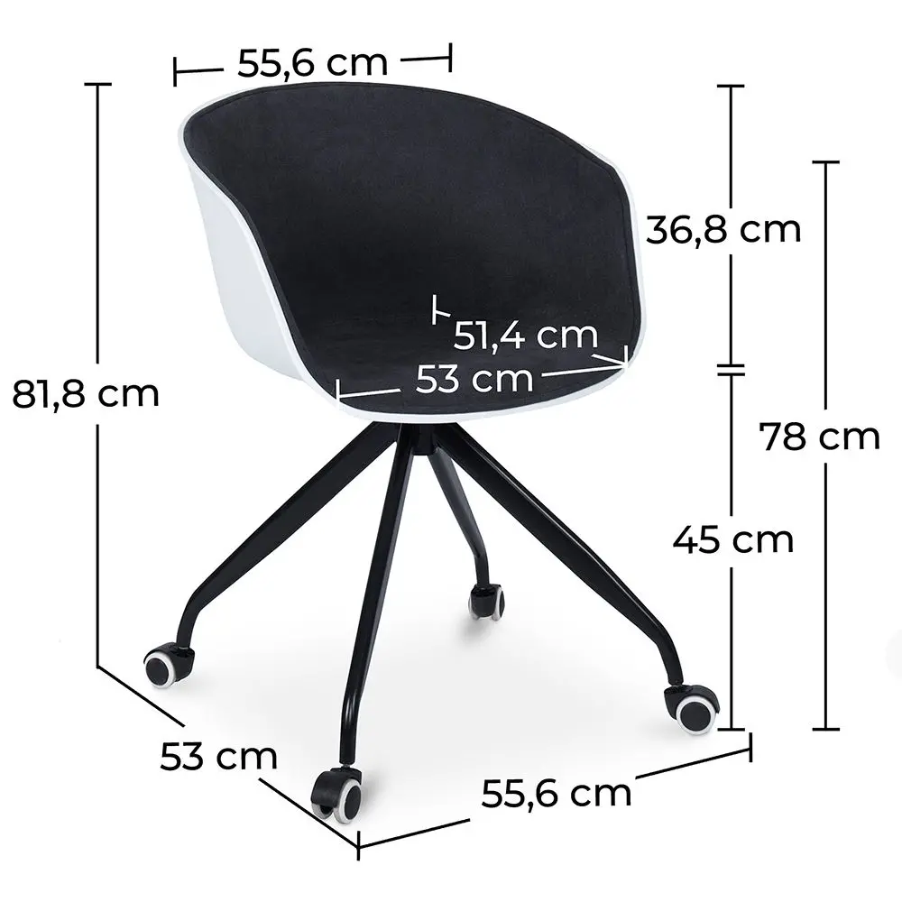 Make your office time easy and comfortable with our popular design chair. You can easily maneuver around your office to reach out for something thanks to the chair's wheels. The legs have a powder coating that allows for a long-lasting, durable, and economical finish. So, you are guaranteed that this item will serve you longer than any other ordinary chair. The seat also features a white PP backrest with a fabric cushion to enhance your comfort. Measuring D52*W57.5*H81*SH45cm, our affordable chair offers you maximum comfort, maneuverability, and durability, ensuring the best office time one could ever wish for.