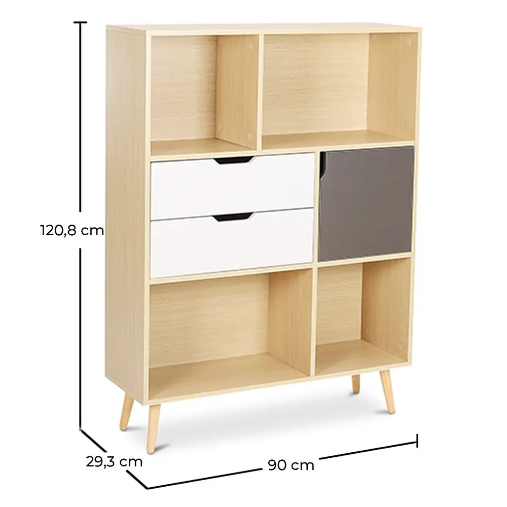 This bookcase library has a strong Scandinavian style thanks to the combination of its warm tones. Do not hesitate and take home this high quality wooden library cabinet.