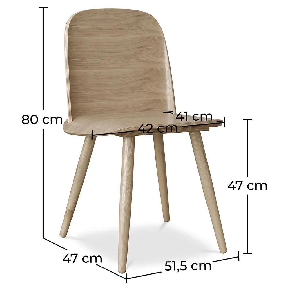 The Nerdy chair is an elegant and original dining chair thanks to its curved wood shape. It is a natural wood colour chair consisting of 4 legs in solid ash wood. It is highly resistant and stands out for its high quality.