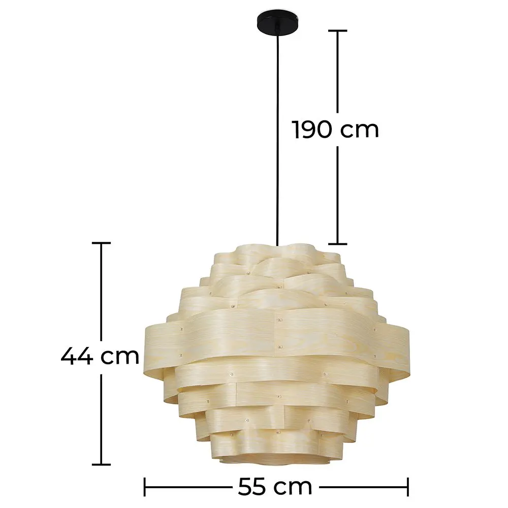 If in need of a new pendant lamp to add a touch of class to your decor, then look no further. This gorgeous boho style lamp has everything going for it, not least of all, it's attractive natural colour. The high-quality veneer gives the appearance of a solid wood lamp, yet it is much more affordable. This design hanging lamp comes with a long cable, that can be adjusted for ease of use. The lamp measures a useful 44cm x 55cm, and it has a smart open design to allow the light to filter through.