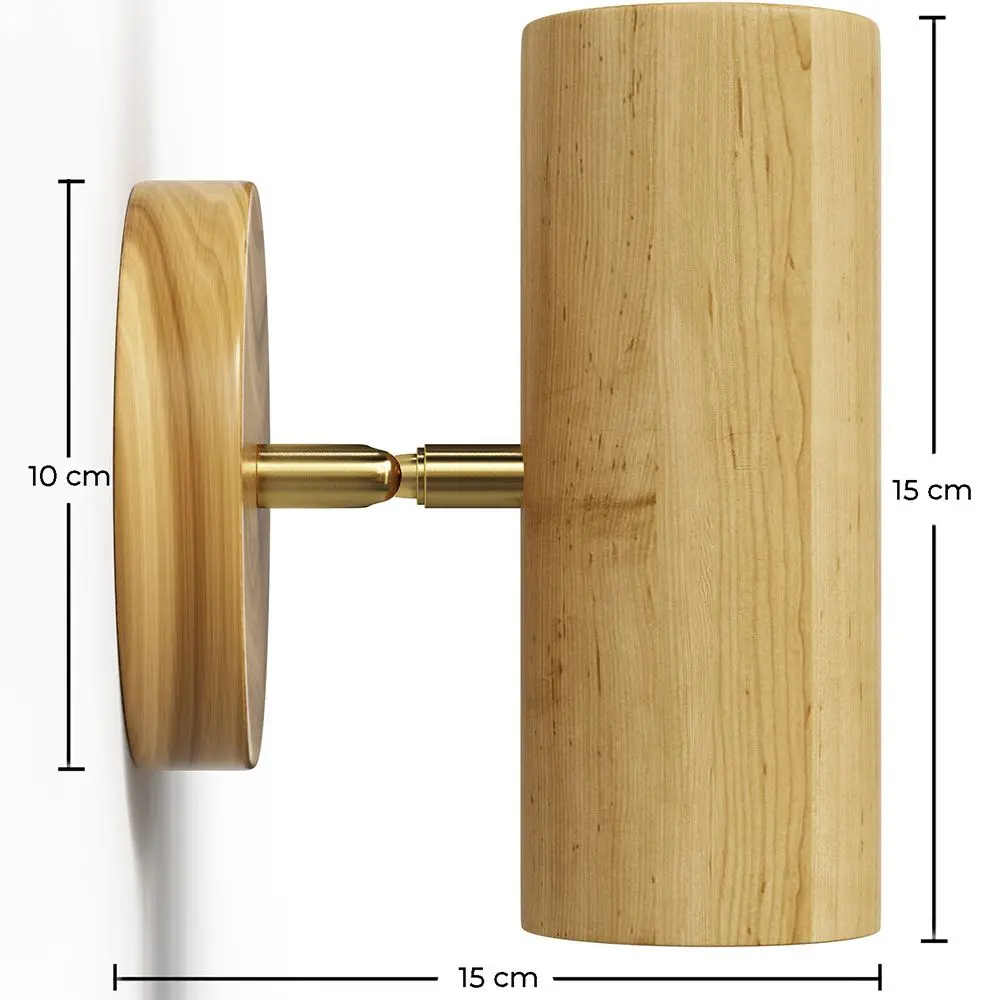 This wooden wall lamp sconce with a focus on aesthetics and functionality is perfect for those who appreciate style in their spaces. Its minimalist design and natural wood finish allow it to blend seamlessly in modern, Scandinavian, or even industrial environments. The design of this wall lamp sconce stands out for its originality and versatility. A wooden bracket securely attaches to the wall, from which a golden metal arm emerges, allowing you to adjust the direction of the light as desired, providing focused and adjustable lighting for various situations.